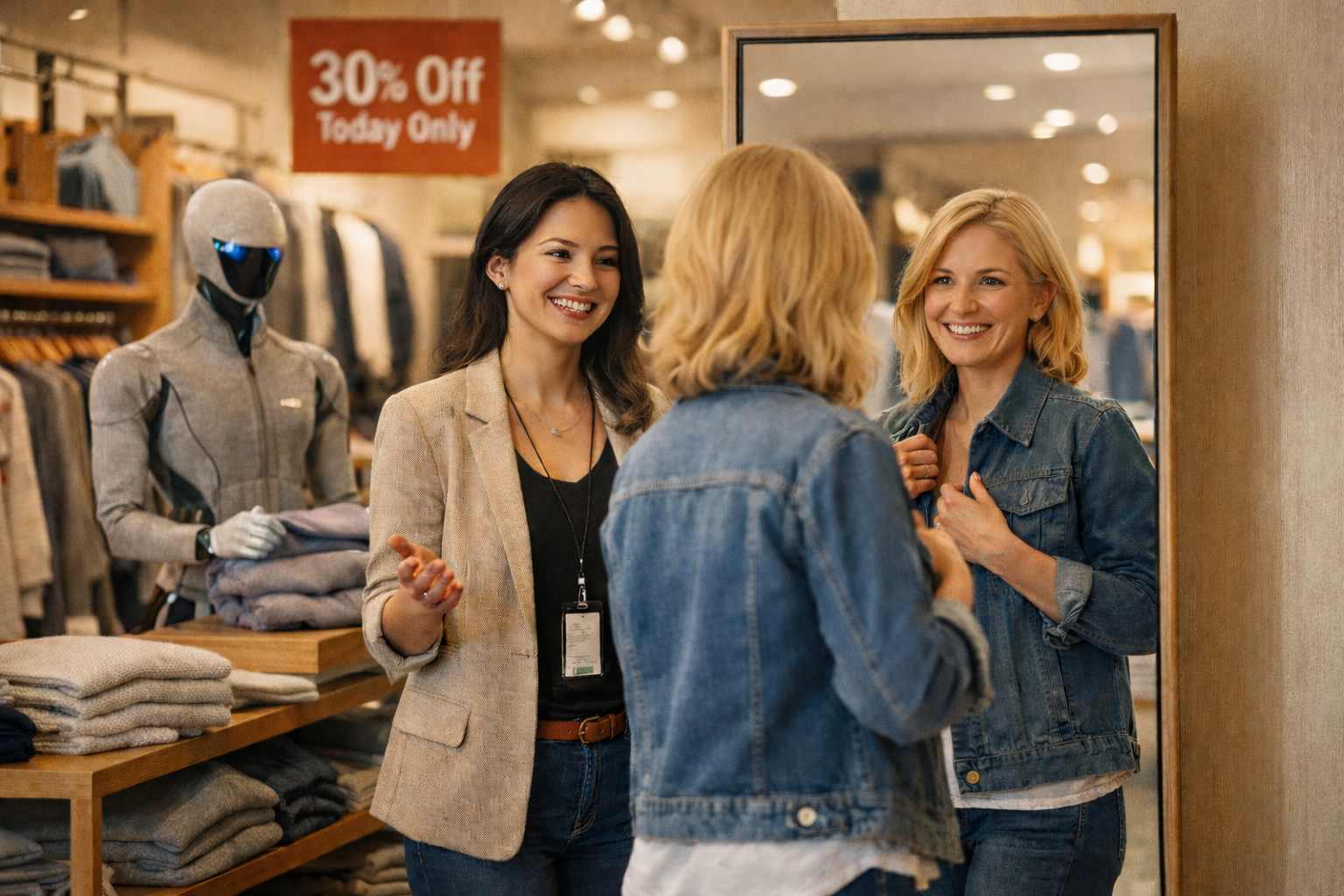 - Human employees focus on what people do best: helping customers, offering styling advice, curating the shopping experience, and making judgment calls about merchandising while overseeing the intelligent systems running behind the scenes.