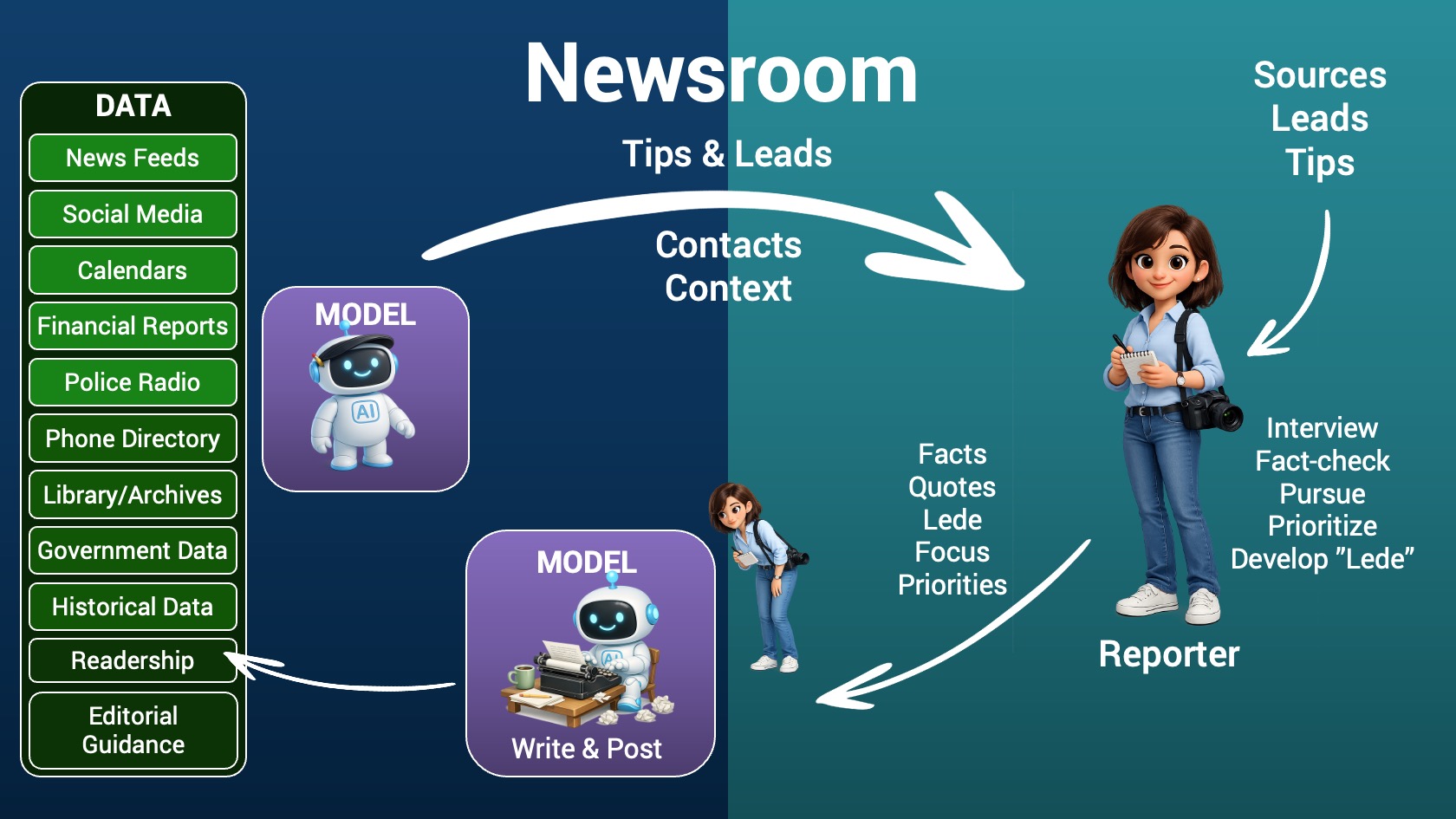 And the newsroom operates at a speed and scale that was previously impossible.